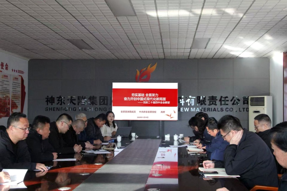 为精准把握党的二十届四中全会精神核心要义,切实把全体干部员工的思想和行动统一到党中央决策部署及集团公司工作要求上来,11月19日,府谷天桥新材料公司特邀府谷县委党校高婷老师开展专题学习讲座,系统解读全会精神。公司党委书记汪涛结合公司实际情况部署后续学习及工作任务,为公司高质量发展筑牢思想根基。