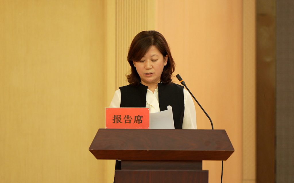 王雪莲代表第一届工会委员会作《工会第一届委员会工作报告》